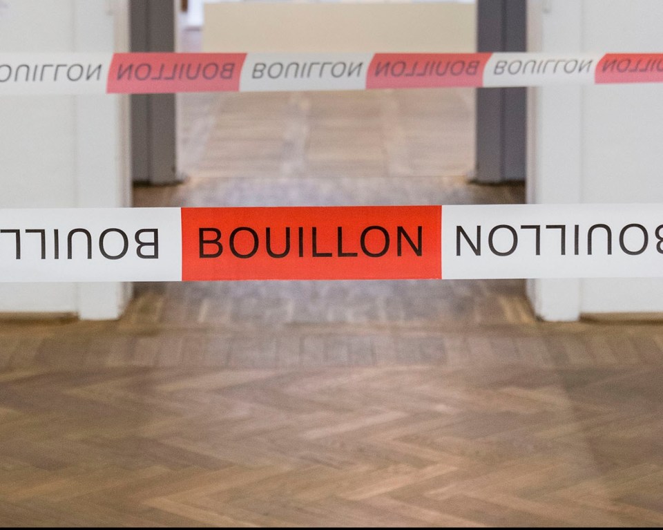 In 2015, in Bremen, the group carried out performative action of the »occupation and liberation process« of public spaces. The group members were dressed in special uniforms with »BOUILLON badges« like military emblems. They spontaneously marked off the public areas in the city with barrier tape, thereby closing them off for the people. The collective self-experiment tested how the environment reacted to the strangers‘ actions and which forms of communication emerged in the process.